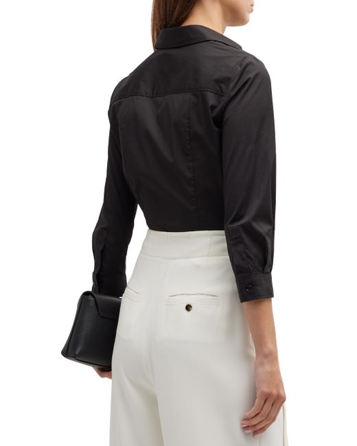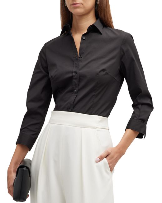 Channel the designer's signature understated elegance with this simple cotton button-down blouse. It is expertly tailored in a crisp silm-fit silhouette and accented with subtle embroidered CH monogram at the cuffs. Point collar Three-quarter sleeves Button front Button barrel cuffs Shirttail hem Back yoke Cotton/polyurethane Dry clean Made in Italy SIZE & FIT About 25" from shoulder to hem Model shown is 5'10" (177cm) wearing US size 4 Please note: This item runs large. ABOUT THE BRAND Carolina Herrera's eponymous brand reflects her signature personal style. Since launching her line in 1981, the Venezuelan designer has won numerous accolades and landed many notable figures on best-dressed lists. Today, the label's Creative Director Wes Gordon delivers on the label's elegant aesthetic with sophisticated yet whimsical dresses, separates and accessories. Designer Evening - Herrera /CH > Carolina Herrera > Saks Fifth Avenue. Carolina Herrera. Color: Black. Size: 0.