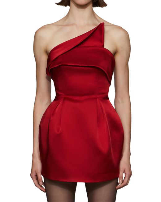 Crafted of lustrous duchess satin, the Ayla minidress from Et Ochs features a tailored strapless design with waist darts and a structured, asymmetric layered neckline. Asymmetric neckline Strapless Back zip closure 85% polyester/15% viscose Dry clean Imported SIZE & FIT About 33.25" from shoulder to hem Model measurements: 5'10" tall Model is wearing a US size 4. Contemporary Sportswear - Trend > Et Ochs > Saks Fifth Avenue. Et Ochs. Color: Lipstick Red. Size: 0.