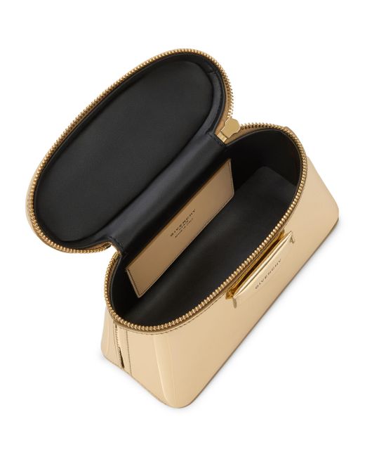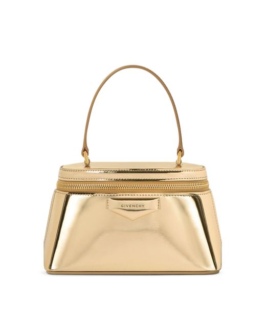 Antigona vanity bag in mirror effect leather with chain. Antigona line Zipped closure Leather handles for hand carrying Removable metal chain with leather reinforcement for crossbody carrying Pentagonal patch with embossed Givenchy signature on the front Givenchy Paris signature on the inside Golden-finish metal details One main compartment with one card slot inside Nappa lining 7.3 in x 4.7 in x 3.1 in Composition: 100% calfskin leather Secondary material: 100% lambskin Made in Italy. Lsd Handbags - Givenchy > Givenchy > Saks Fifth Avenue. Givenchy. Color: Golden.