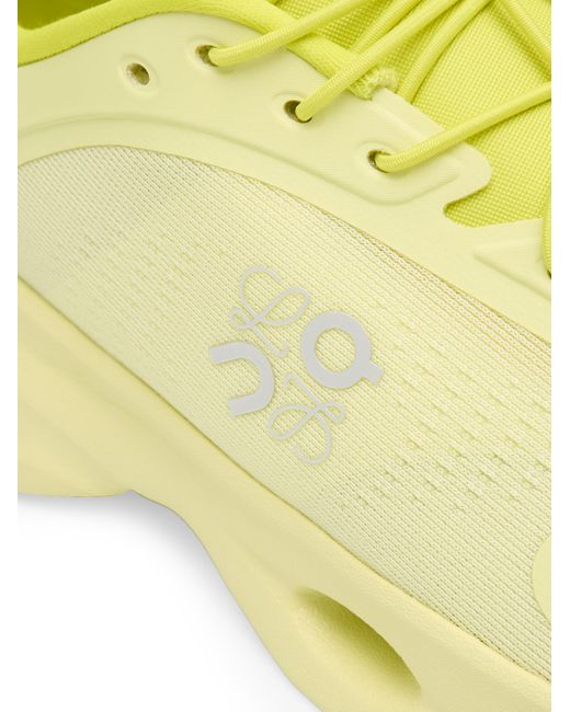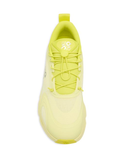 From the LOEWE x On Collaboration. These Cloudsolo sneakers showcase a layered, engineered mesh upper crafted of semi-translucent yarns with a TPU overlay and an exclusive co-designed light foam sole built with a single Cloud at the heel. Complete with the LOEWE x ON co-branded logo at the side, this pair is styled with speed laces with a pebble toggle and a heel tab for easy wear. Round toe Lace-up style Polyester/ethylene vinyl acetate/polyurethane/thermoplastic polyurethane/polyamide upper Rubber sole Imported Please note: This item runs small. We recommend ordering one size up. ABOUT THE BRAND For over 179 years, LOEWE has been synonymous with classic luxury and expertise in fine leather and tailoring. The Spanish house's latest chapter hones in on redefining the craft through an intellectual-yet-playful approach to fashion. The line's bold and vibrant take on the Spanish lifestyle is infused in its effortlessly chic handbags, shoes, ready-to-wear and accessories for women and men. Women's Shoes - French Designer > Loewe > Saks Fifth Avenue. LOEWE. Color: Lime. Size: 6.