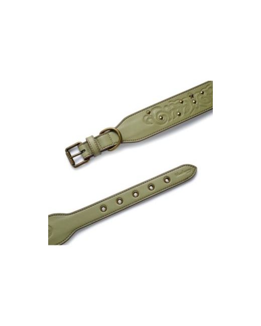 Green Silver-Powered Freshness Microfiber Suede Dog Collar x2013 Embossed Classic Pattern with Bronze Studs