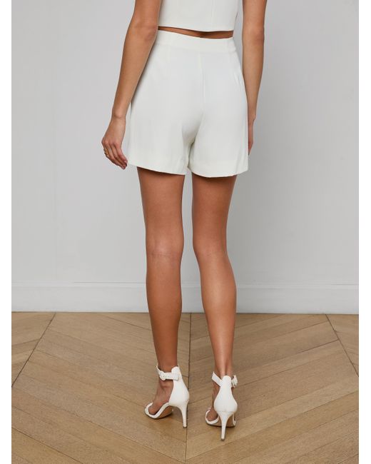 The epitome of effortless polish. Crafted from our lightweight fluid suit fabric for beautiful drape and movement, the Naamah features sharp pleats to elevate your warm-weather look. Added bonus: this fabrication is wrinkle resistant, making it perfectly packable and the ideal choice for working into your resort rotation. • Fluid suiting fabric • Unlined• Invisible side zip L'AGENCE Naamah Pleated Short In Ivory