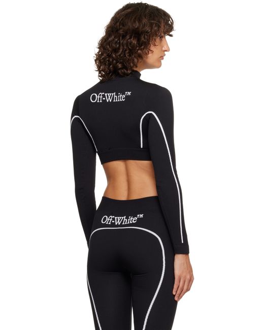 Knit and rib-knit stretch nylon sport top. · Seamless construction · Mock neck · Jacquard logo at chest and back · Elasticized cropped hem · Jacquard stripe at sides and sleeves Supplier color: Black/White