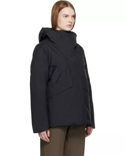 Down-filled nylon GORE-TEX® taffeta jacket. · GRS-certified recycled nylon · RDS-certified down · Waterproof and windproof · DWR coating, PFAS-free · Bungee-style drawstring at StormHood™ · Funnel neck · Zip closure with press-stud placket · Flap and zip pockets at waist · Dropped shoulders · Inset elasticized cuffs · Zip and patch pocket at interior · Bungee-style drawstring at interior hem · Full quilted lined Supplier color: Black