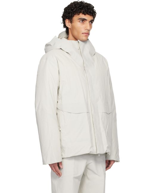 Down-filled nylon taffeta jacket. · Wind-resistant and waterproof · RDS-certified down · GORE-TEX ePE waterproof membrane, PFAS-free · Bungee-style drawstring at StormHood™ · Funnel neck · Two-way zip closure · Zip and flap pockets at front · Bungee-style drawstring at hem · Inset jersey cuffs · Zip pockets at interior · Full quilted ripstop lining Supplier color: Dark cocoon