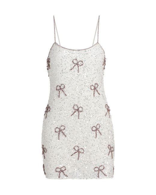 This Windson sleeveless scoopneck minidress from LoveShackFancy is decorated with sparkling sequins. Scoopneck Fixed straps Concealed side zip closure 100% nylon Lining: 100% nylon Combo: 100% polyester Trim: 100% polyester Dry clean Imported SIZE & FIT About 30" from shoulder to hem Model measurements: 5'10" tall Model is wearing a US size 4. Contemporary Sportswear - Trend > Loveshackfancy > Saks Fifth Avenue. LoveShackFancy. Color: Pearlescent Pink. Size: 00.