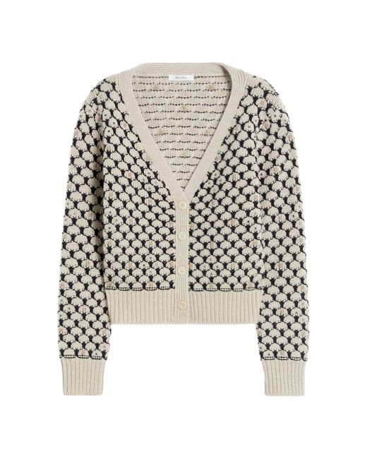 Fancy-knit cardigan featuring hand-embroidered detail and all-over rhinestone appliqués. Cardigan in fine wool and cashmere yarn Boxy lines with a slightly cropped cut V-neckline Long set-in sleeves Front fastening with four horn buttons Ribbed edges Knitted fabric 70% wool, 30% cashmere, embroidery thread 70% wool, 30% cashmere, - exclusive of decoration Hand wash cold (40c max), do not bleach, do not tumble dry, flat drying in the shade, cool iron, do not dry clean, do not wet clean, iron with a cloth between, using neutral detergent Imported. Lsd Rtw - Womens Rtw Lsd Mp > Max Mara > Saks Fifth Avenue. Max Mara. Color: Beige. Size: XS.
