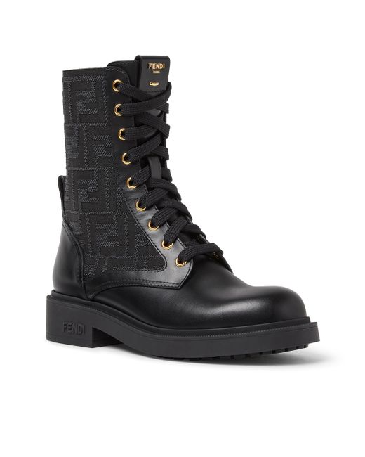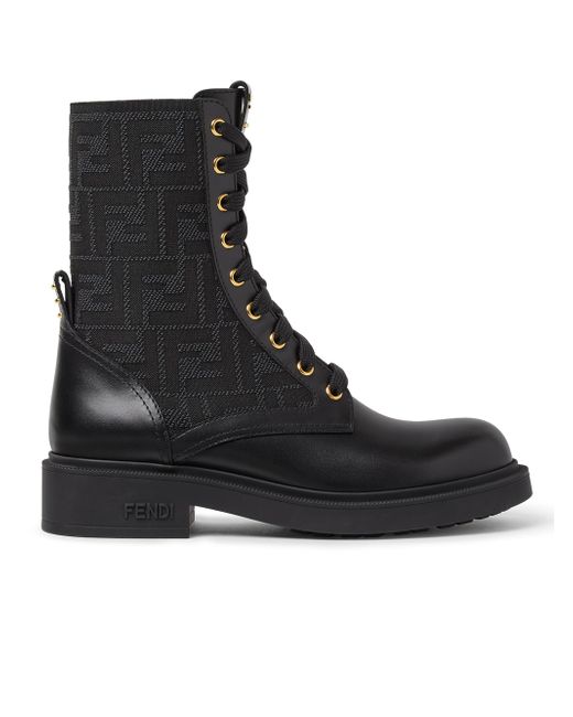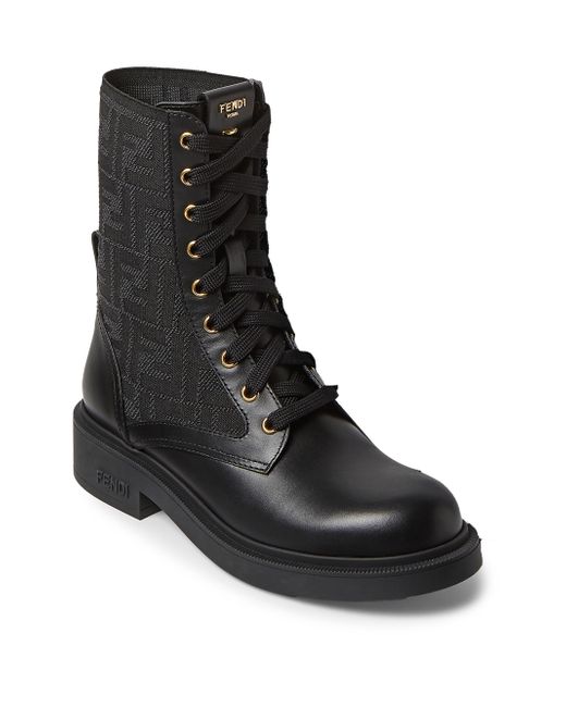Fendi's Filo combat boots are crafted of leather and styled with jacquard weave panels detailed with the label's FF logo pattern embossed on the side. Round toe Lace-up style Leather upper Leather lining Rubber sole Made in Italy SIZE Block heel: about 1.5" (40mm) ABOUT THE BRAND The epitome of elegance and fine craftsmanship, Fendi was founded in 1925 in Rome by Adele and Edoardo Fendi. Today, Creative Director Kim Jones continues the house's emphasis on quality, tradition, experimentation and creativity. Women's Shoes - Fendi Womens Shoes > Fendi > Saks Fifth Avenue. Fendi. Color: Black Antracite. Size: 6.