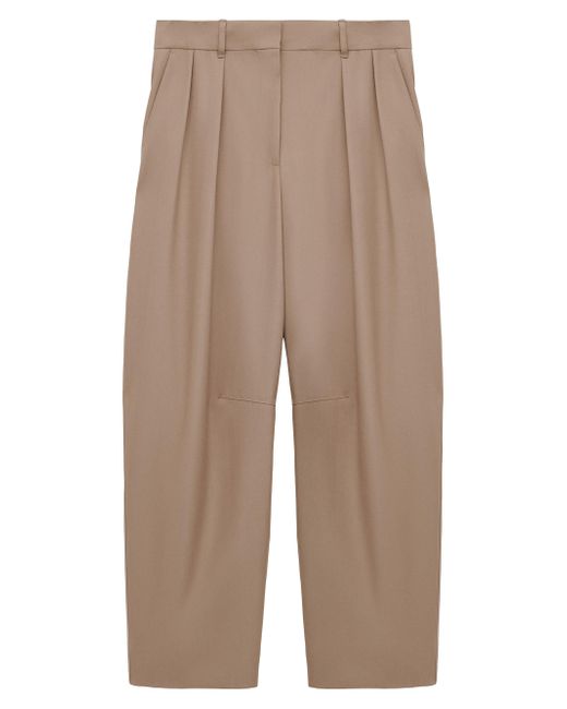 These LOEWE trousers are crafted of a wool blend and feature a barrel-leg silhouette. Pleating at the front completes this style. Belt loops Side slip pockets Front fly 95% wool/5% polyester Lining: 100% cotton Dry clean Made in Italy ABOUT THE BRAND For over 179 years, LOEWE has been synonymous with classic luxury and expertise in fine leather and tailoring. The Spanish house's latest chapter hones in on redefining the craft through an intellectual-yet-playful approach to fashion. The line's bold and vibrant take on the Spanish lifestyle is infused in its effortlessly chic handbags, shoes, ready-to-wear and accessories for women and men. Advanced Designer - Loewe > Loewe > Saks Fifth Avenue. LOEWE. Color: Beige. Size: 0.