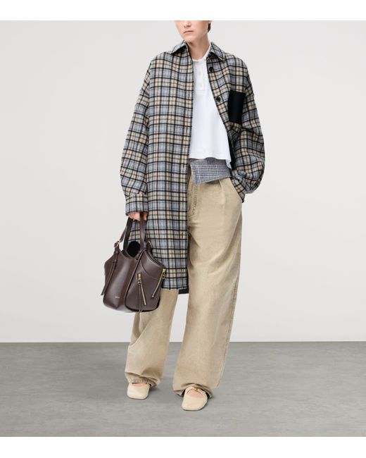 Appealing to the contemporary, relaxed forms are loewe's forte as of recent years. While ultra-soft in a wool-cashmere blend, this check coat sees its car-inspired silhouette reconstructed with a rounded drape, providing comfort and breathing space without appearing baggy or oversized.
