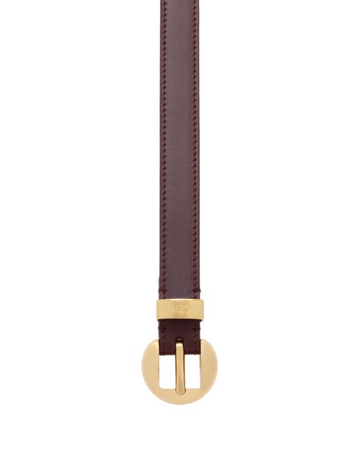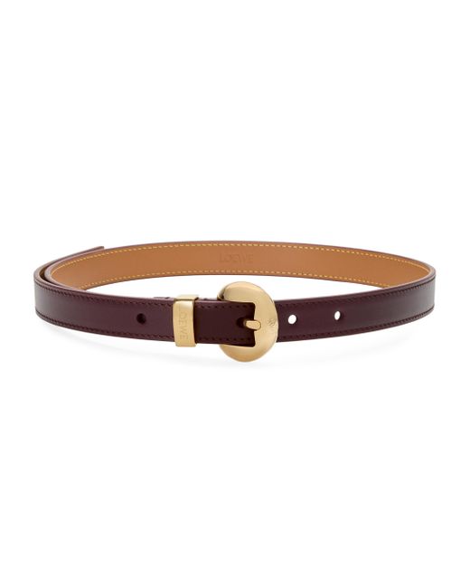 Crafted of leather, LOEWE's Pebble waist belt showcases a lustrous goldtone buckle. Goldtone buckle Leather Spot clean Made in Spain SIZE About 0.75" width ABOUT THE BRAND For over 179 years, LOEWE has been synonymous with classic luxury and expertise in fine leather and tailoring. The Spanish house's latest chapter hones in on redefining the craft through an intellectual-yet-playful approach to fashion. The line's bold and vibrant take on the Spanish lifestyle is infused in its effortlessly chic bags, shoes, ready-to-wear and accessories for women and men. Soft Accessories - Belts > Loewe > Saks Fifth Avenue. LOEWE. Color: Burgundy Gold. Size: Medium.