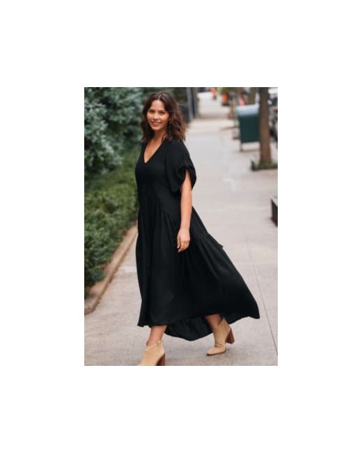 Make a statement in the fabulous flared silhouette of our Val Dress. Combining a sleek, relaxed silhouette and short sleeve coverage, this dreamy dress is a daywear favorite. Maxi length for a look that's timelessly chic, team this dress with sandals and a bold lip. Fabric: Soft fabric is lightweight, comfortable and cool to the touch. Fit: Relaxed, pull-over fit. Self-tie waist. Care: Machine Wash Key Features Include: 100% Viscose. Imported. Length: 55. Plus Sizes 14-32Avenue