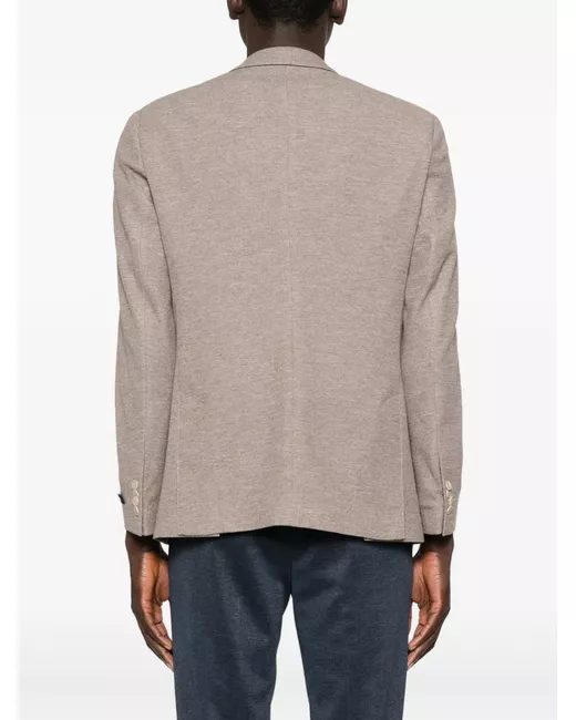 light brown button fastening notched lapels front patch pockets four-button cuffs