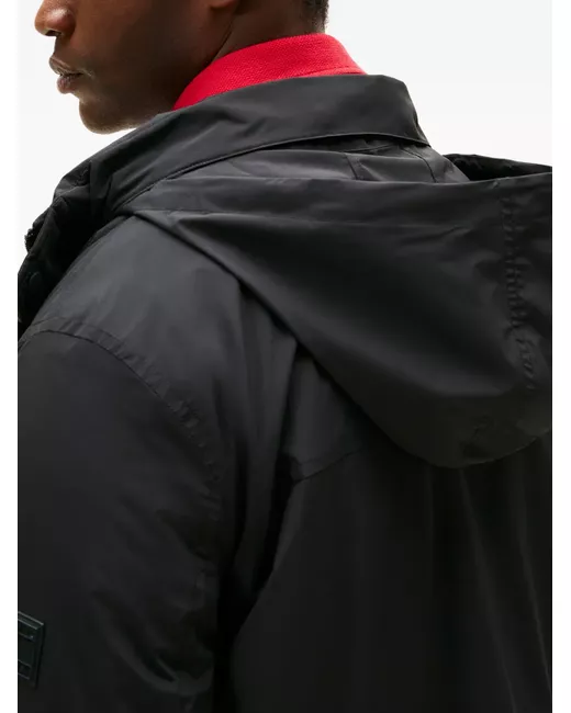 black multiple flap pockets long sleeves logo patch snap-button and zip fastening