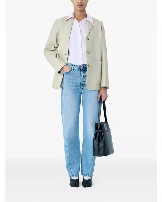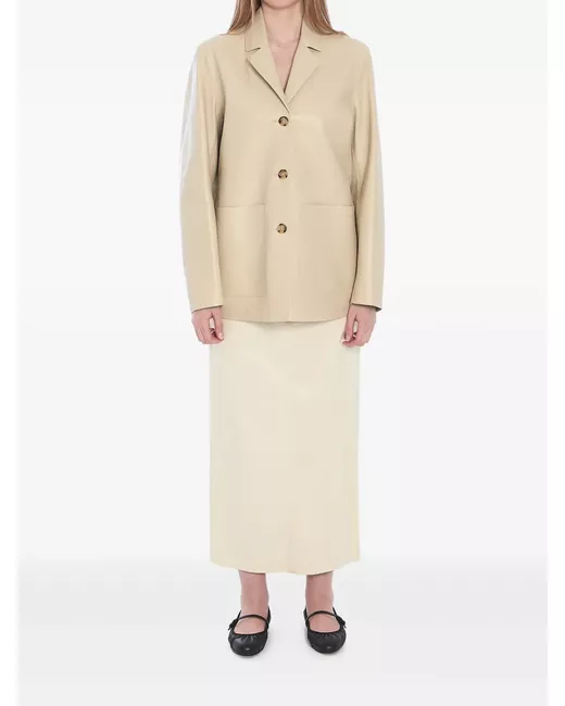 light beige front button fastening two front patch pockets notched lapels straight hem