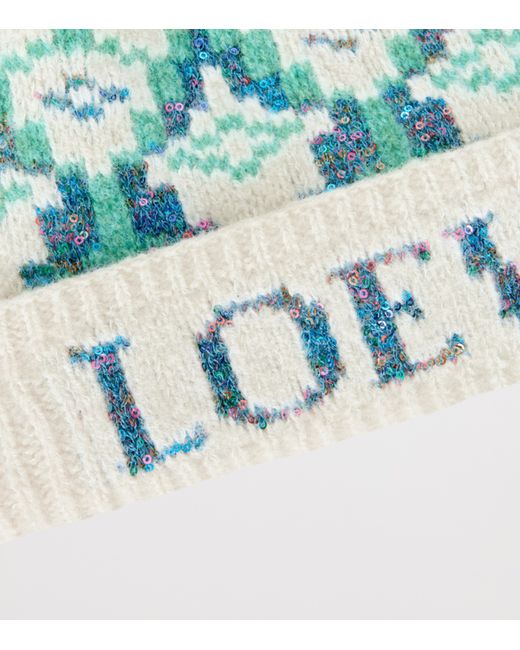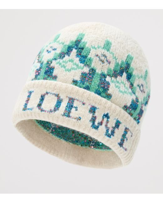 Founded as a collective of artisans in 1846, loewe's legacy of craftsmanship remains as the beating soul of the House, which is evident in this beanie. The winter staple is presented in a midweight wool blend and features a Fair Isle intarsia pattern littered with metallic sequins for a playful addition to your seasonal styling.