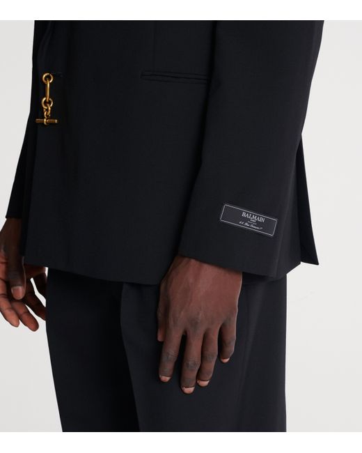 Since its beginnings in 1945, Balmain has been driven by impeccable tailoring, a House specialty that still seen today in pieces such as this blazer. Cut in a slightly oversized silhouette, it features peaked lapels for razor sharp precision, while the toggle and chain fastening lends a gilded touch amongst a foundation of wool.