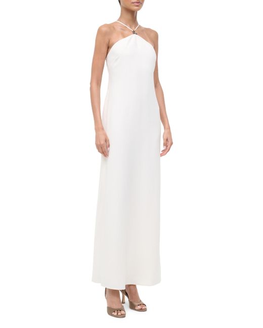 Staud's Calla halter-style maxi dress features an A-line silhouette, metal hardware at the neckline, and a lightweight feel. Halterneck Sleeveless Pulls over 70% acetate/30% polyester Dry clean Imported SIZE & FIT About 60" from shoulder to hem Model measurements: 5'10" tall Model is wearing a US size 4. Contemporary Sportswear - Contemporary Collections > Staud > Saks Fifth Avenue. Staud. Color: Ivory. Size: 0.