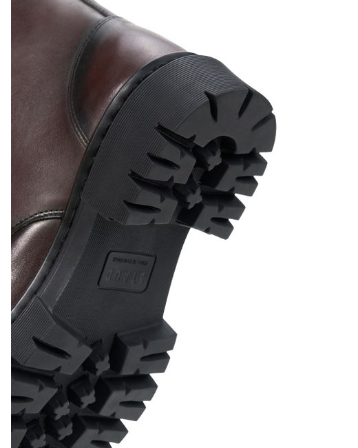 Crafted of leather, these Henry combat boots from Staud feature a lace-up style, a back pull tab, and a block heel. Round toe Lace-up style Leather upper Rubber sole Made in Portugal. Women's Shoes - Workshop Shoes > Staud > Saks Fifth Avenue. Staud. Color: Espresso. Size: 5.