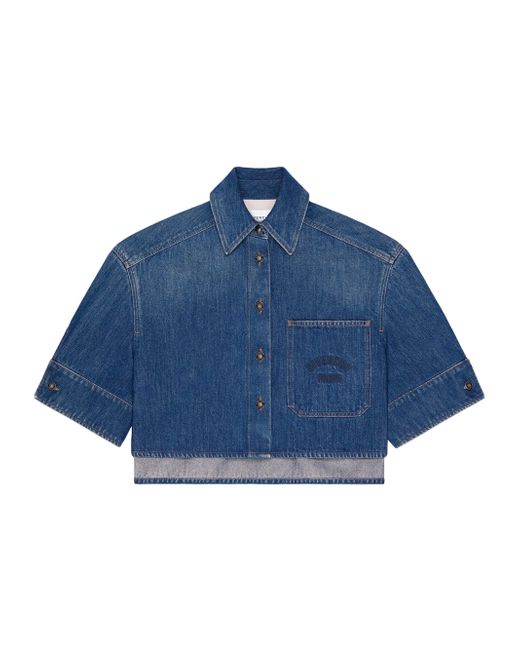Cropped Cocoon shirt in medium blue denim. Short-sleeved shirt in medium blue denim Classic collar One chest pocket with Givenchy Paris embroidered patch Button closure Buttoned bottom sleeves Givenchy engraved buttons Couture seams for a cocooning volume Cropped fit Composition: 100% cotton Lining: 65% polyester, 35% cotton Imported. Lsd Rtw - Givenchy Rtw > Givenchy > Saks Fifth Avenue. Givenchy. Color: Medium Blue. Size: 2.