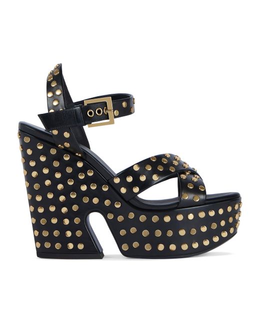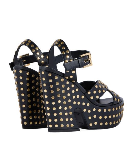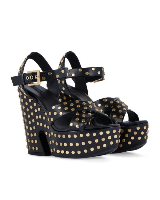 Clog platform sandals in leather with studs. Platform sandals in calfskin leather with studs Clog line Crossed straps on top Ankle strap with metal buckle Givenchy label on the leather insole Comfortable platform heel with studs Heel height: 3.7 in Composition: 100% calfskin leather; Lining: 100% cowhide leather Made in Italy. Lsd Rtw - Givenchy Rtw > Givenchy > Saks Fifth Avenue. Givenchy. Color: Black. Size: 6.