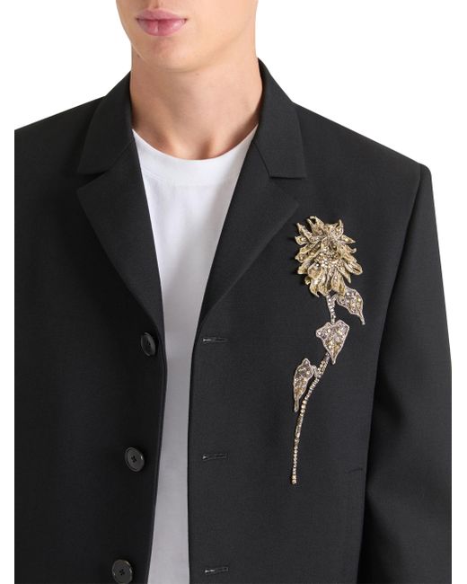 Embellished single-breasted cropped jacket in wool. Structured jacket in wool grain de poudre Notch lapel Embroidered flower in stones and sequins on the chest Single breasted Buttoned cuffs Two side pockets Cropped fit Satin lining Composition: 100% wool Lining: 100% viscose Made in Italy. Lsd Rtw - Givenchy Rtw > Givenchy > Saks Fifth Avenue. Givenchy. Color: Black. Size: 36.
