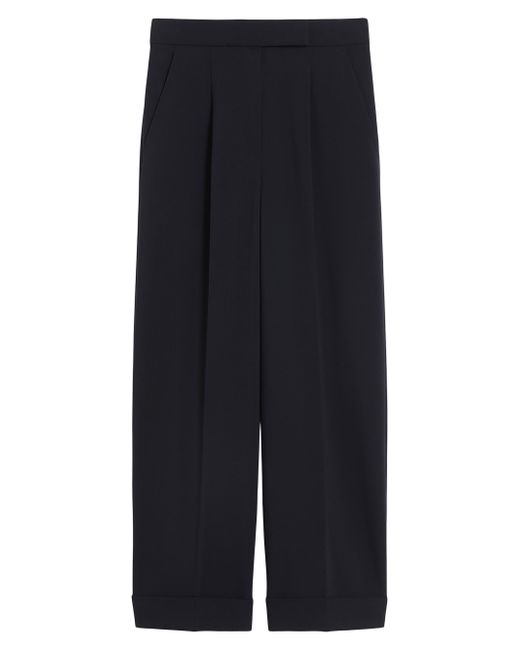 High-waisted trousers with turned-up hem, cropped above the ankle. Trousers in double-faced weftwise stretch woollen cloth Carrot fit with pressed pleat detail High-cut waistband with a fly-covered zip and hook-and-bar fastening Slant side pockets Buttoned welt rear pockets Sewn darts on the back of the waist 98% virgin wool, 2% elastane Do not wash; do not bleach; do not tumble dry; cool iron; professionally dry clean perchloroethylene mild process; do not wet clean.; do not iron the buttons.; protect buttons before washing.; contains non-textile parts of animal origin Imported. Lsd Rtw - Womens Rtw Lsd Mp > Max Mara > Saks Fifth Avenue. Max Mara. Color: Ultramarine. Size: 0.