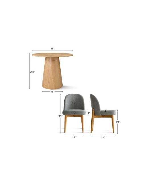 This 3-piece round dining set is the perfect blend of style, comfort, and functionality for compact living. The 35" Mdf tabletop features a natural wood grain finish and a sturdy pedestal base that brings a warm, minimalist aesthetic. The two upholstered side chairs come with softly curved backs, plush cushions, and solid wood legs—offering timeless design with exceptional seating comfort. Ideal for small kitchens, breakfast nooks, or apartment dining areas, this space-saving set creates an inviting spot for meals, morning coffee, or casual conversations. A great choice for modern, transitional, or mid-century inspired homes.