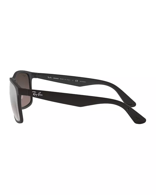 Black Chromance rectangular frame sunglasses from Ray-Ban featuring straight arms with angled tips, mirrored lenses, a logo decal on the lens, side logo branding and a straight nose bridge. This item comes with a protective case.