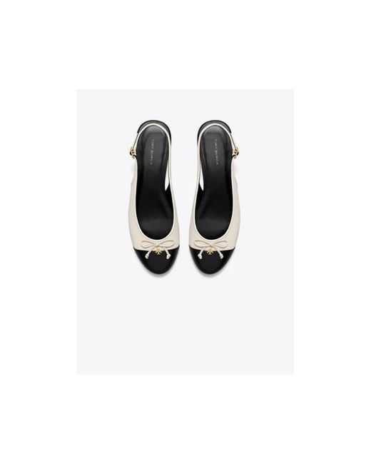 The timeless chic of a contrast cap-toe ballet pairs with the airy ease of a slingback ankle strap. Crafted in leather and embellished with a delicate bow and subtle Double T, the elegant design beautifully frames the foot. Crafted in partnership with a Leather Working Group-certified tannery, supporting high standards in leather manufacturing and chemical management.