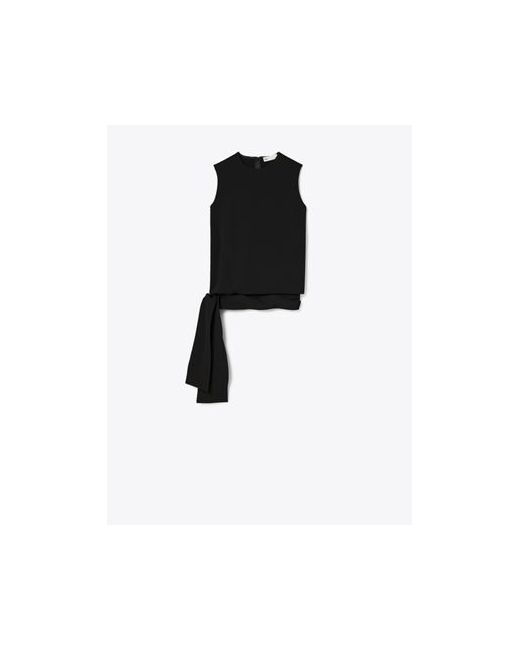 The crepe wrap top has a layered look with a wide tie at the side hem. A sharp and polished piece to wear year-round, dressed up with a skirt or tailored pants and down with denim.