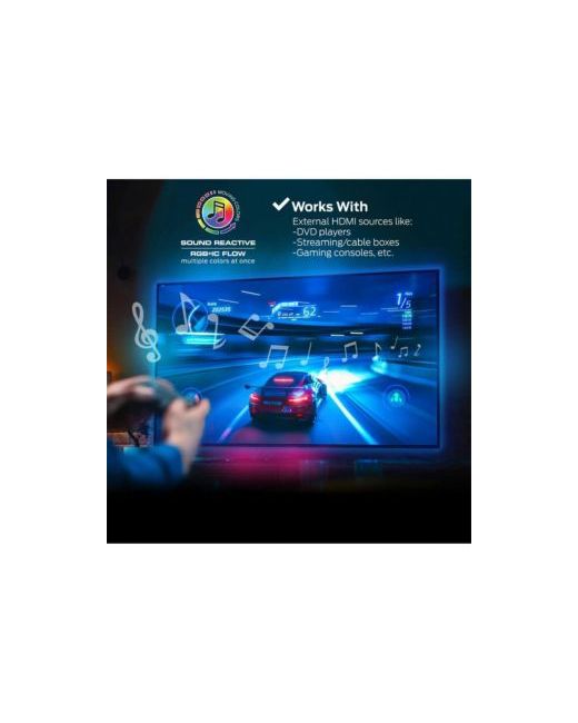 Upgrade your entertainment space with a dynamic smart lighting system that reacts to what s on your screen in real time. Designed for Tvs up to 85 inches, this Led strip uses Hdmi color synchronization to extend on-screen colors onto your walls, creating a more immersive atmosphere for movies, gaming, and streaming. The flexible strip installs easily behind the display and provides uniform, vibrant backlighting that enhances contrast while reducing eye strain. With app-controlled customization, multiple lighting modes, and real-time scene-based effects, this smart lighting solution transforms an ordinary TV setup into an engaging smart home experience. The included Hdmi sync controller ensures precise color matching across your connected devices, while the durable Led strip offers long-lasting brightness and performance. Perfect for living rooms, gaming setups, and home theaters, this Led system elevates any space with intelligent, modern illumination.