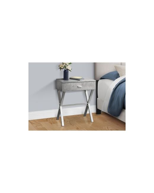 Gray Accent Table Side End Nightstand Lamp Storage Drawer Living Room Bedroom Grey Laminate Chrome Metal Contemporary Modern