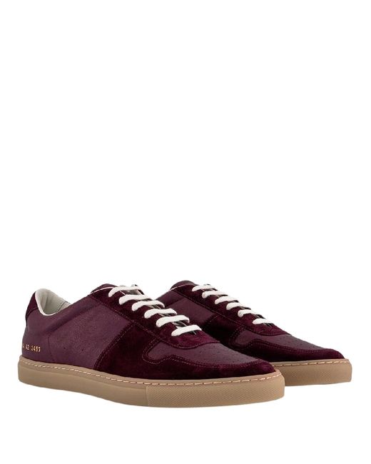 Common Projects Mens Sneakers. SKU: 2484-BURGUNDY. Color: Burgundy. Vamp Style: Lace-up. Common Projects Bball Duo Leather Sneakers. This sneaker features a front lace-up fastening, a round toe, a low-top silhouette, and is finished with gold-embossed serial number detailing for a sleek, signature look. Upper Material: Leather. Lining Material: Leather. SoleMaterial: Rubber. Please visit the brand website for sizing information.