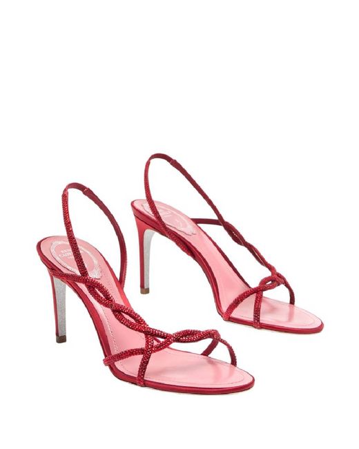 Rene Caovilla Ladies Sandals. SKU: C12472-080-R001V126-RED SATIN/LIGHT. Color: Red Satin/Light Siam. Rene Caovilla Round Toe Braid Red Sandal. These sandals are crafted from satin and feature an ankle strap, braided detailing, and hand-applied rhinestones for added sparkle. With a round toe and a stardust sole, they offer a sophisticated yet comfortable finish. Made in Italy. Please visit the brand website for sizing information.