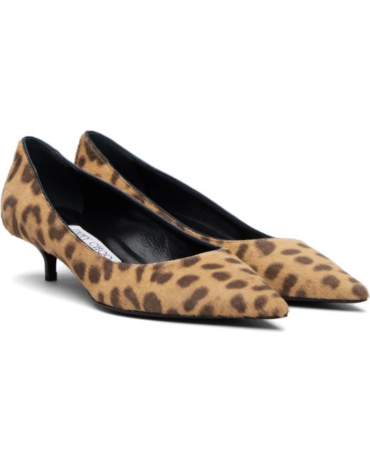 Calf-hair heels. · Leopard pattern printed throughout · Pointed toe · Grained leather lining · Covered kitten heel with rubber injection · Calfskin sole · Heel: H1.5 Supplier color: Natural