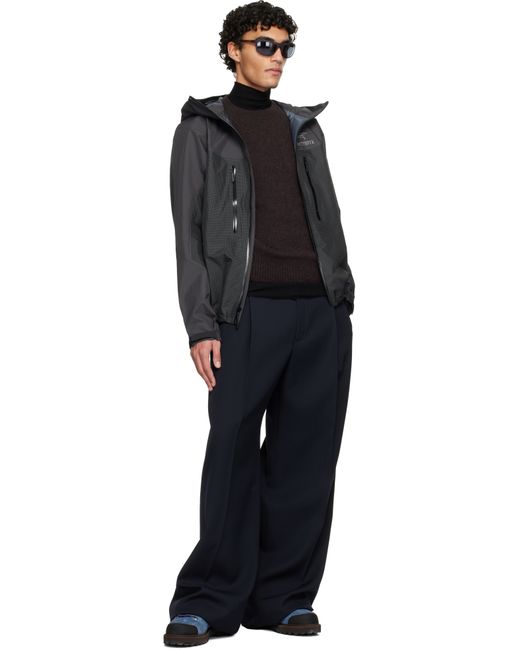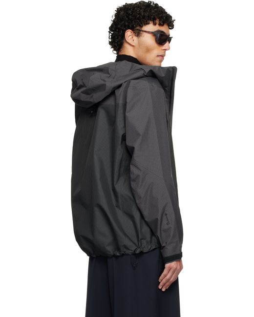 GORE-TEX PRO 50D Hadron™ ripstop jacket. · Waterproof: FC0 DWR, PFAS-free · Windproof · RECCO® reflector technology · Bungee drawstring at brimmed StormHood™ · Embroidered logo at chest · Zip pockets at front · Zip closure · Bungee-style drawstring at hem · Zip vent at armscyes · Velcro tab at cuffs · Unlined · 358 g Supplier color: Graphite/Black