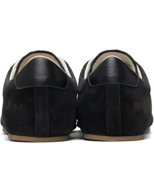 Low-top calfskin suede sneakers. · Lace-up closure · Padded collar · Perforated stripes at sides · Text stamped at outer side · Buffed leather lining · Treaded rubber sole Supplier color: Black