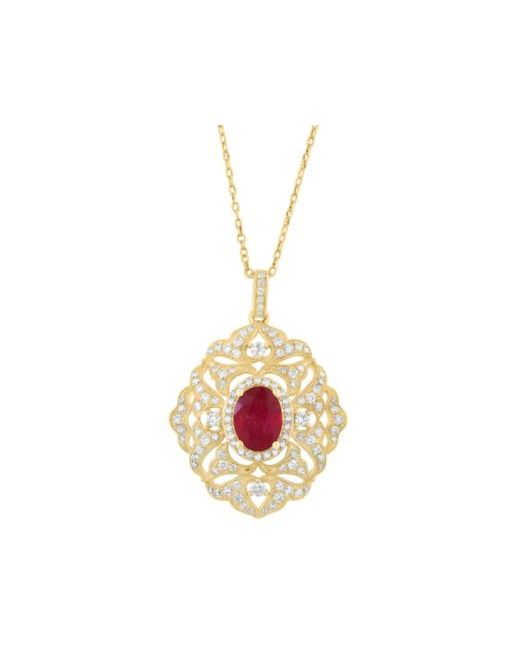 Center your style with a luxurious statement using this pendant necklace from Effy Collection, where a radiant ruby is enhanced by a surrounding cluster of diamonds. The yellow gold construction offers timeless warmth.