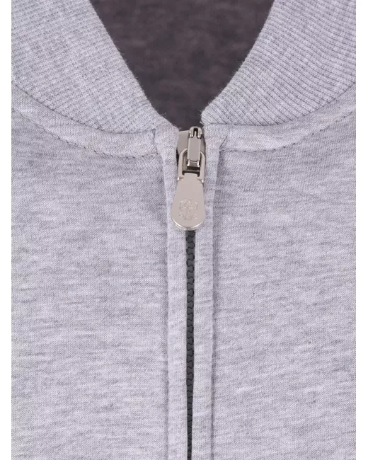 grey zip fastening welt pockets ribbed hem ribbed cuffs