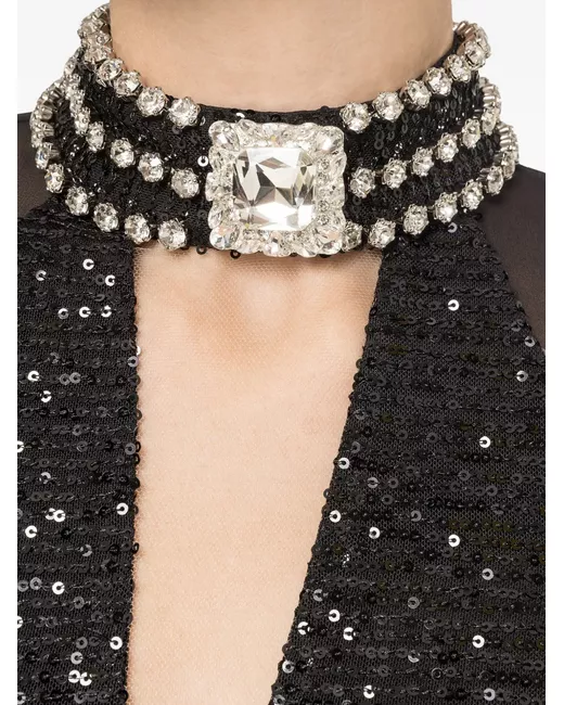 black sequined fabric V-neck crystal embellished neck