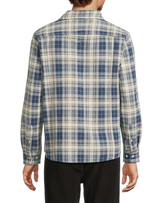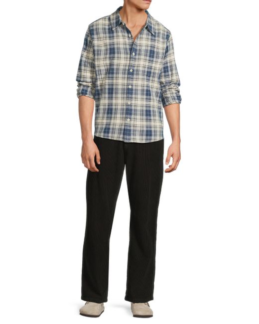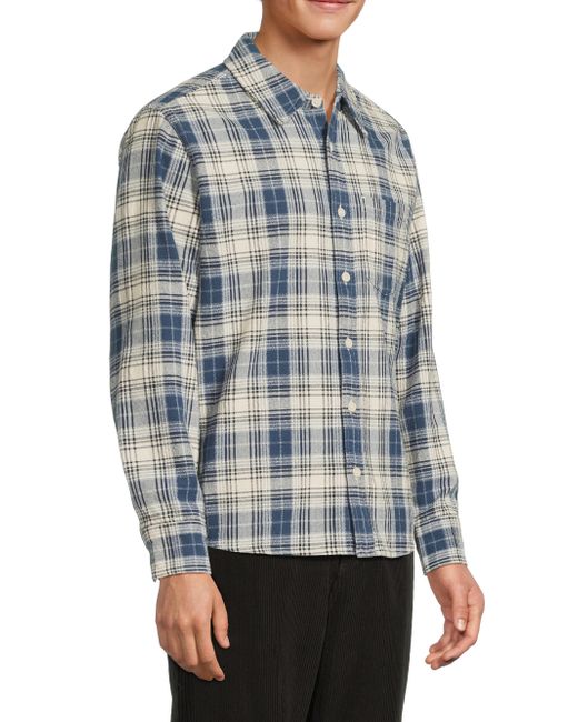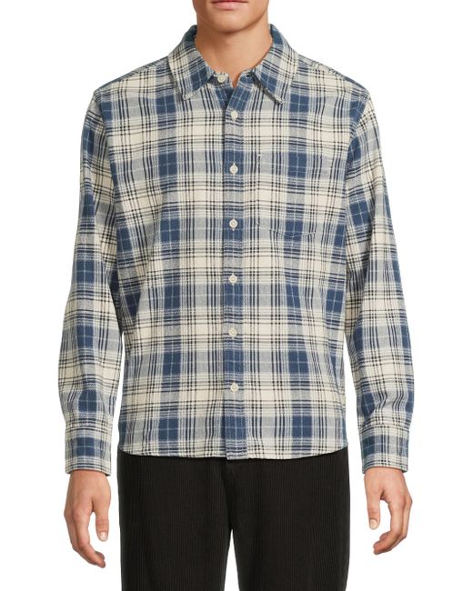 This Equinox button-front shirt from Corridor is crafted of cotton plaid featuring a chest pocket and buttoned barrel cuffs. Spread collar Long sleeves Button-front closure 100% cotton Machine wash Imported SIZE & FIT About 28" from shoulder to hem Model measurements: 6'2" tall, 40" chest, 31'' waist Model is wearing a US size Medium. Mens Denim & Contemp - Contemporary Tops > Corridor > Saks Fifth Avenue. Corridor. Color: Navy. Size: Medium.