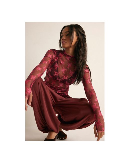 Perfect for layering, this sultry mesh long-sleeve is featured in a sheer design with floral embroidery, a high-neckline and thumbhole details. * Relaxed fit * Fluttery hemline * Unlined and sheer Lady Lux Layering Top by Intimately at Free People in Zinfandel Combo, Size: XS