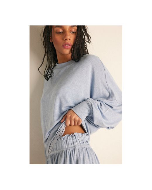 Soft, dreamy, and made for endless lounging, this pullover from Intimately features a stretchy terry modal fabrication, an oversized, drop-shoulder silhouette, and a fitted, lace-trimmed bottom hem for a femme finish. * Terry modal fabrication * Oversized pullover * Crew neckline * Cuffed, relaxed-fit sleeves Dream State Pullover by Intimately at Free People in Soft Chambray, Size: XS