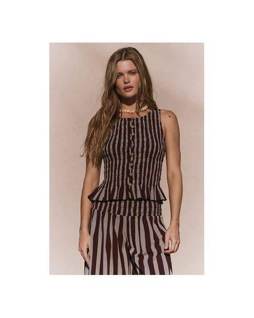 So sweet in all stripe, this set from free-est features a button-front top and extra wide-leg pants in a crisp cotton poplin and flattering smocked details for the perfect go-to duo. **Top:** * Crew neckline * Button-front closure * Peplum hem * Sleeveless **Pants:** * Mid-rise * Pull-on * Smocked waistline * Wide legs * Cropped length Wild Summer Set by free-est at Free People in Blackberry Combo, Size: XS