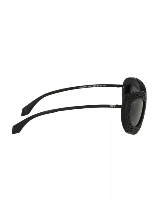 black oval frame perforated detailing dark lenses slim arms These glasses come with a protective case.