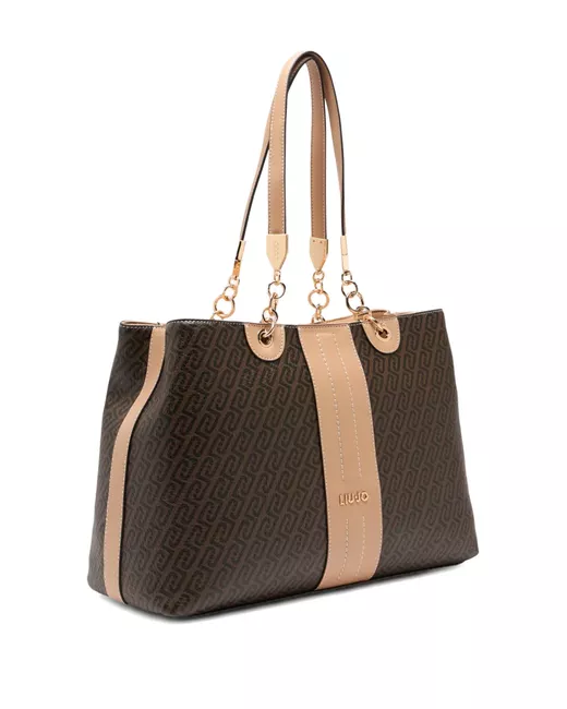 brown monogram logo print drummed effect back pocket detachable shoulder strap zip fastening metal accessory