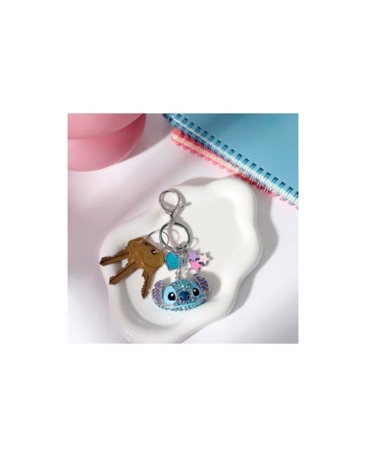 Sparkle on the go. This Disney keychain features a pave crystal Stitch head with pastel heart and star charms on polished silver tone hardware. Clip to keys, totes or backpacks for instant character joy.