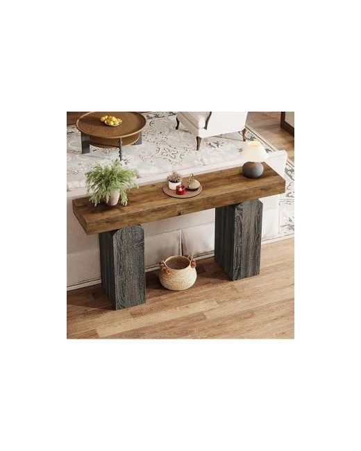 This entryway table features a robust arched pedestal base, providing sturdy support for its spacious 63-inch tabletop. The design combines ample surface space for decor with an open lower shelf for baskets, enhancing both style and tidiness.