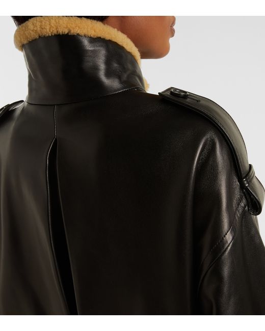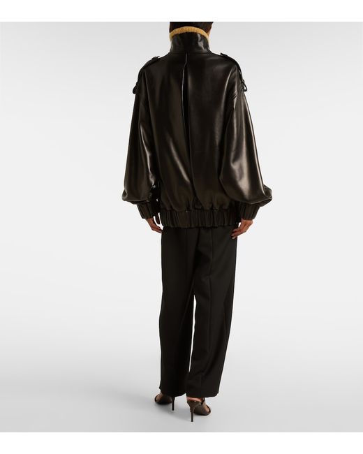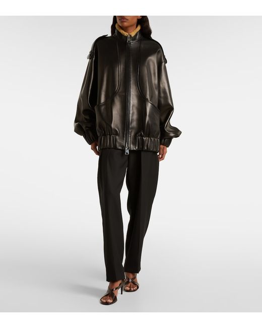 Material: 100% lamb leather. Care instructions: specialist clean. Made in the USA. Designer color name: Black. Item color: black. Closure: two-way zipped front. Pockets: slant pockets. Cuff: elasticated. Hem: elasticated. Epaulettes. Leather.